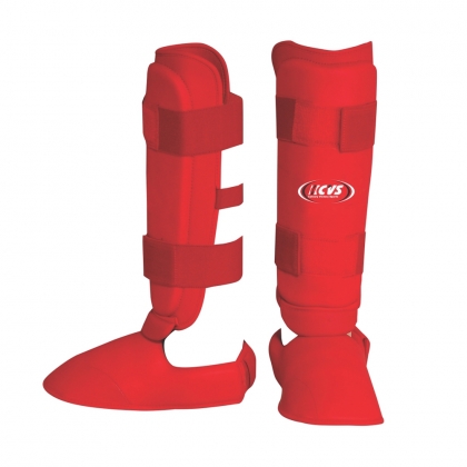 made of top quality synthetic leather. EVA padding on the shin & instep Elasticised Velcro closure Detachable instep with two elastic straps at the instep bottom for holding foot.